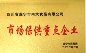 四川省遂寧市南大食品有限公司——法人獨資、國家級重點龍頭企業。在歷經走村串戶、挑擔經營、作坊生產后,2004年3月公司正式注冊成立,通過20余年的努力,公司完成了生豬養殖——屠宰加工——生物科技產品智造——冷鮮水產市場專屬經營的多元化產業布局。公司現有員工360人,總部占地101.7畝,注冊資本5000萬元,總資產近10億元,擁有冷庫2.5萬噸,年屠宰加工生豬能力50萬頭,年產值10億余元,系“農業產業化國家重點龍頭企業”。